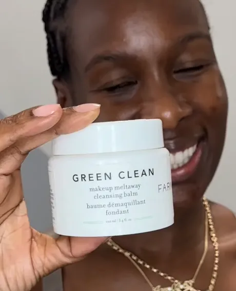 Melt away the day with Farmacy Green Clean Makeup Meltaway Cleansing Balm, a luxurious, solid-to-oil cleanser designed to remove even the most stubborn makeup, sunscreen, and impurities. This silky balm transforms into a lightweight oil upon contact, effortlessly dissolving dirt while nourishing and hydrating the skin. Enriched with moringa tree extract to neutralize pollutants, papaya enzymes for gentle exfoliation, and sunflower & ginger root oils for deep conditioning, this balm leaves your skin feeling fresh, smooth, and radiant. Infused with an uplifting blend of lime, bergamot, and orange essential oils, it offers an invigorating and spa-like cleansing experience. Suitable for all skin types, including sensitive and dry skin.
