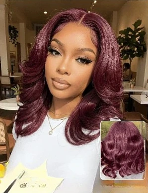 Get in your power with our Purple Black Cherry Wispy Blow Out Bob a gorgeous infusion of rich multidimensional color and salon fresh styling that comes in to wear. This 7×5 pre-cut lace wig is a blend of deep cherry color with a touch of purple-black nuance, resulting in a head-turning color that is suitable in all seasons. With a wispy blow-out finish and bouncy loose wave texture, this bob will give you the appearance of having just stepped out of the salon without you having to do a thing.